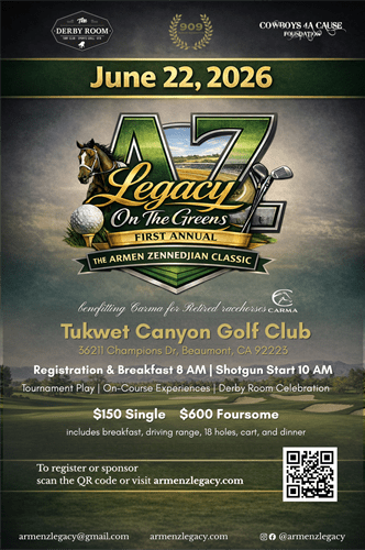 Proceeds from the event will benefit Carma- a charitable organization dedicated to supporting retired racehorses, ensuring Armen’s love for the sport continues to make a lasting impact.